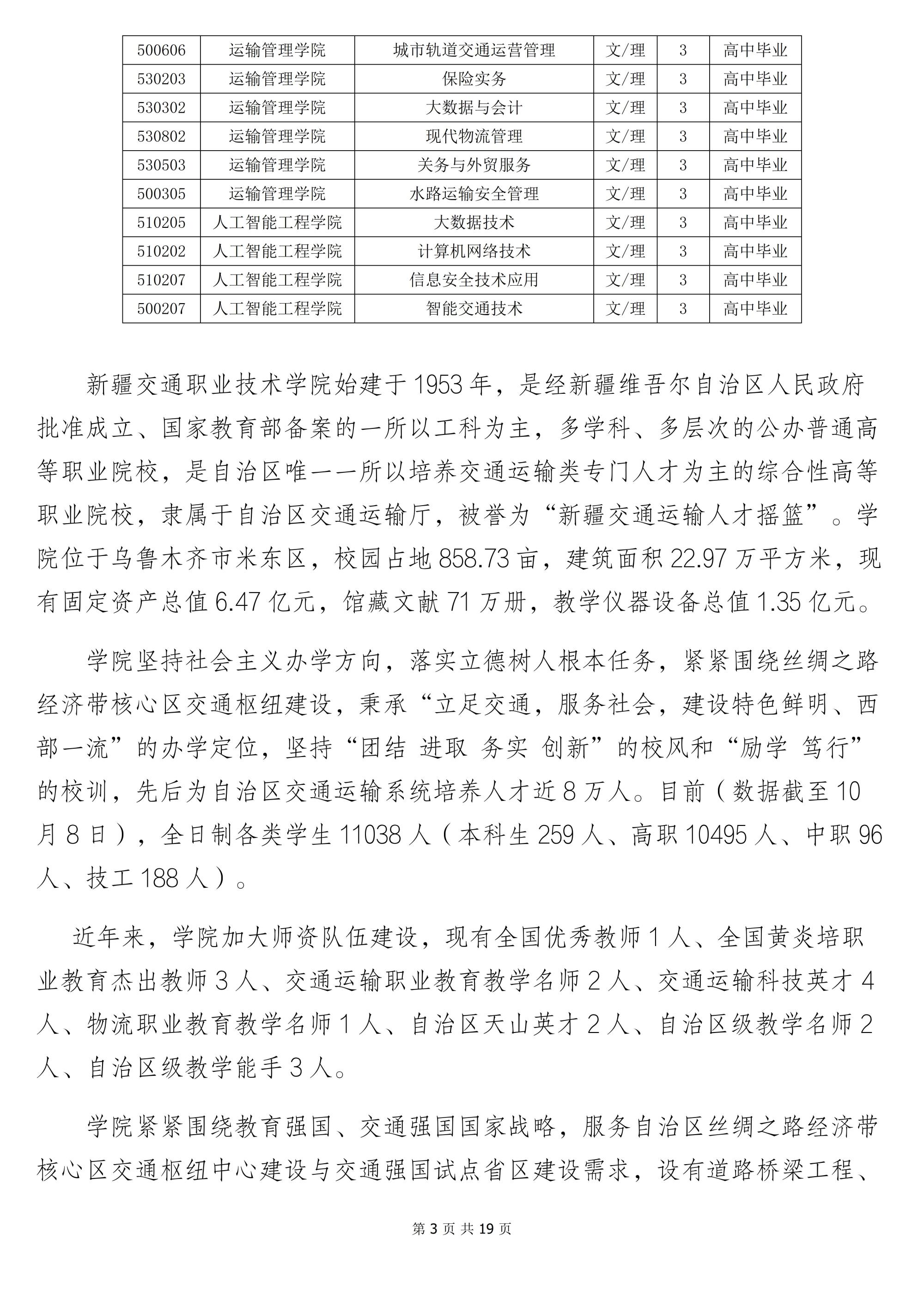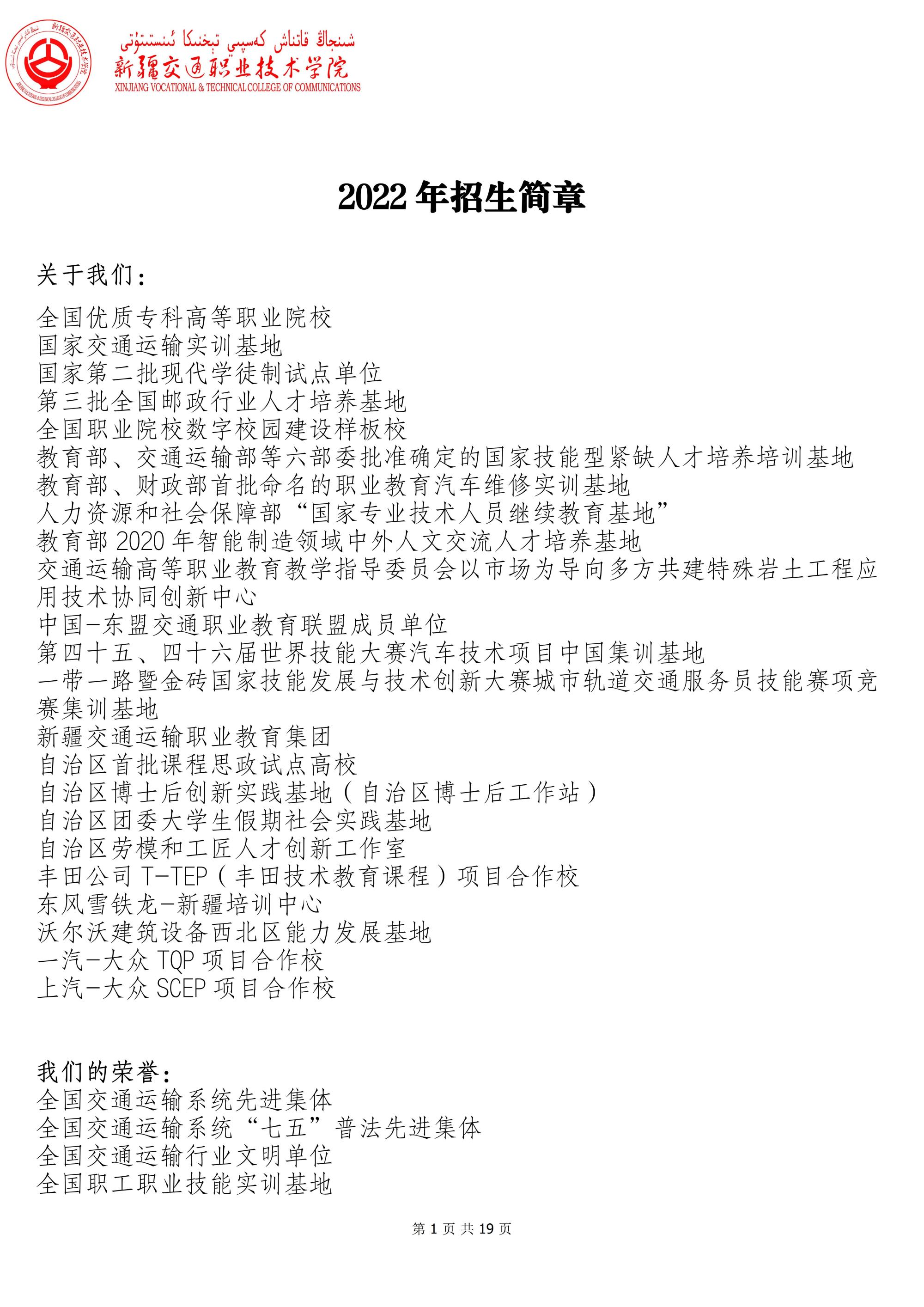 新疆交通职业技术学院2022年招生简章