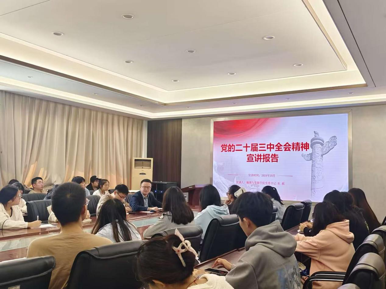2024年10月18日中午,ballBET贝博BB艾弗森党委书记杜彪,在ballBET贝博BB艾弗森会议室,为师生宣讲党的二十届三中全会精神。