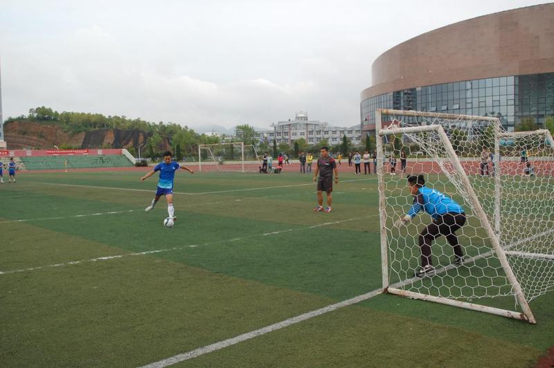 24日下午五点,地旅与数计两学院队伍早早来到赛场,为争夺冠军而做准备。地旅学院吴亚平书记也来到赛场,为队员们加油鼓劲。比赛开始,先由双方女队进行激烈的比拼,女子刚强坚韧的一面,在对足球的热忱中展现的淋漓尽致。20分钟过去了,女队双方握手言和,任由接下来到男队一展雄风。裁判哨响,两学院男队立刻展开了激烈角逐。不一会地旅的健儿以自身实力成功进球,拉拉队的欢呼声响彻整个球场,气氛变得紧张而热烈。比赛接近尾声,两队以1:1的局面进入到点球阶段。每一球都关乎成败,最后贝博官网健儿不负众望以5:3的点球斩获冠军,我们的喜悦不溢言表。