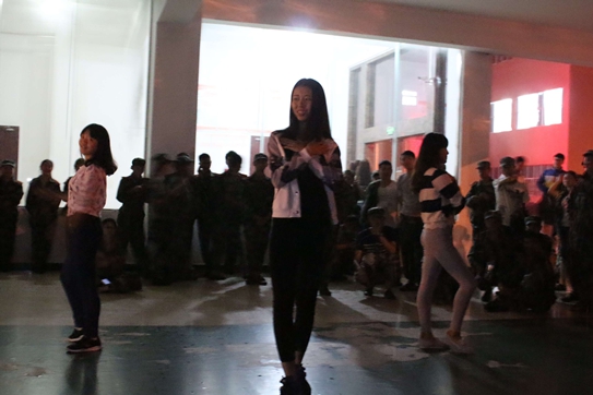 贝博官网2015级新生在学校的统一安排下,军训已进入第十天,大家都处于比较疲惫的状态。为了给贝博官网新生加油打气,在学院统一领导下,院学生会组织了“文艺下连队”新生军训慰问演出。9月20日,院学生会全体成员来到逸夫楼架空层慰问了正在军训的地旅学院2015级全体新生。虽然天空渐黑,伴着小雨,但也没有阻挡学长学姐看望新生的急切之情。