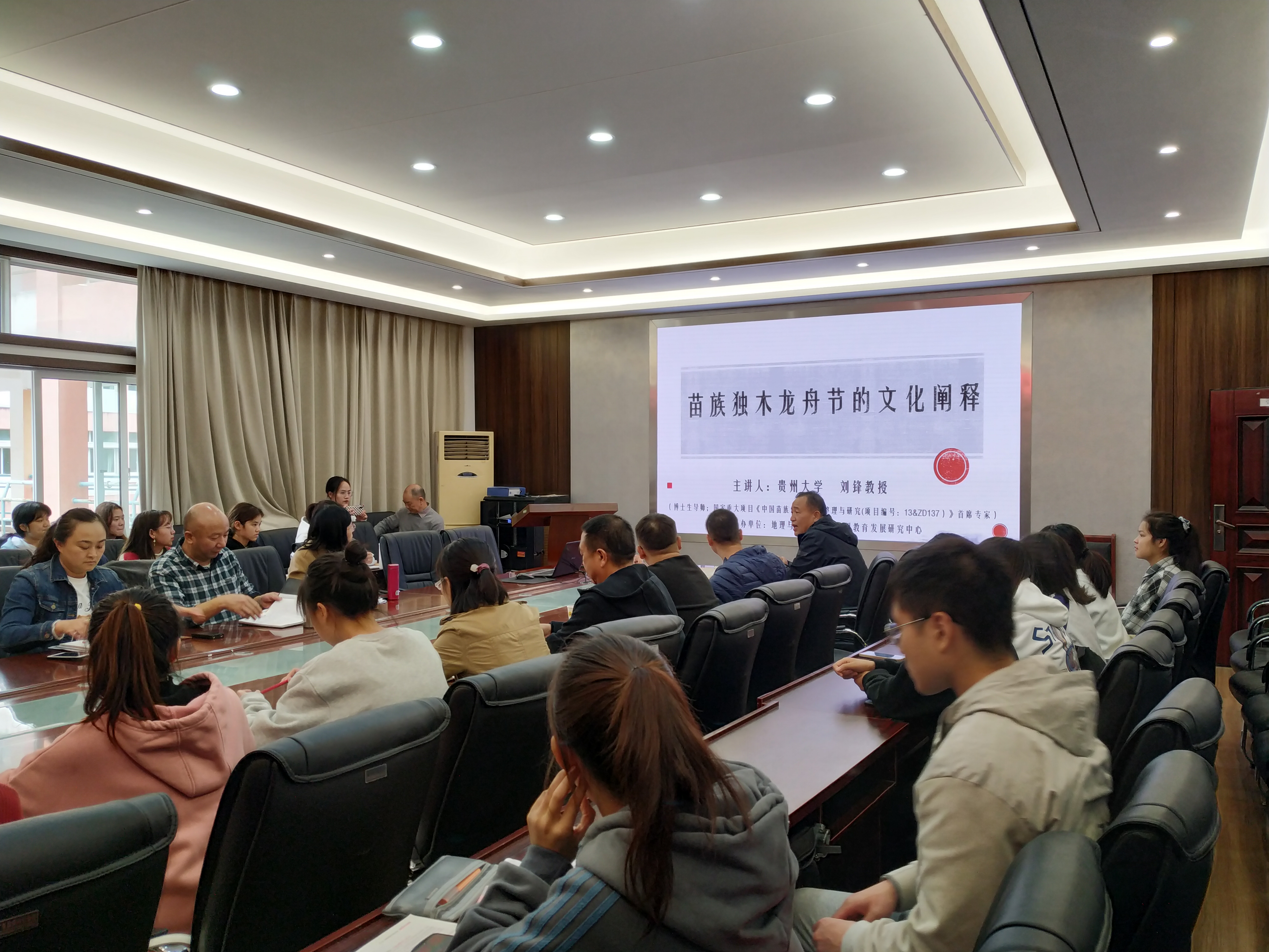 2021年10月19日下午,受ballBET贝博BB艾弗森邀请,贵州大学博士生导师、刘锋教授在该学院会议室做了题为“苗族独木龙舟节的文化阐释”的学术讲座。本次讲座由ballBET贝博BB艾弗森党委书记吴亚平同志主持,有近40名在校师生现场聆听。