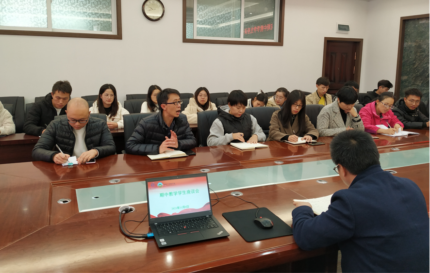 为进一步提升教学质量,更好地为学生服务,11月8日下午,ballBET贝博BB艾弗森在宁静楼325会议室就本学期的课程设置预安排、教师教学方法和教学手段、教学服务与管理、教学设施设备等方面进行了2021-2022学年度第一学期期中教学工作学生座谈会。院长罗绪强、教学负责人邓家彬、辅导员郜红娟、刘丹丹、韩默然,徐秀月、赵志猛、况江等老师及各班班委参加了此次会议。会议由邓家彬主持。