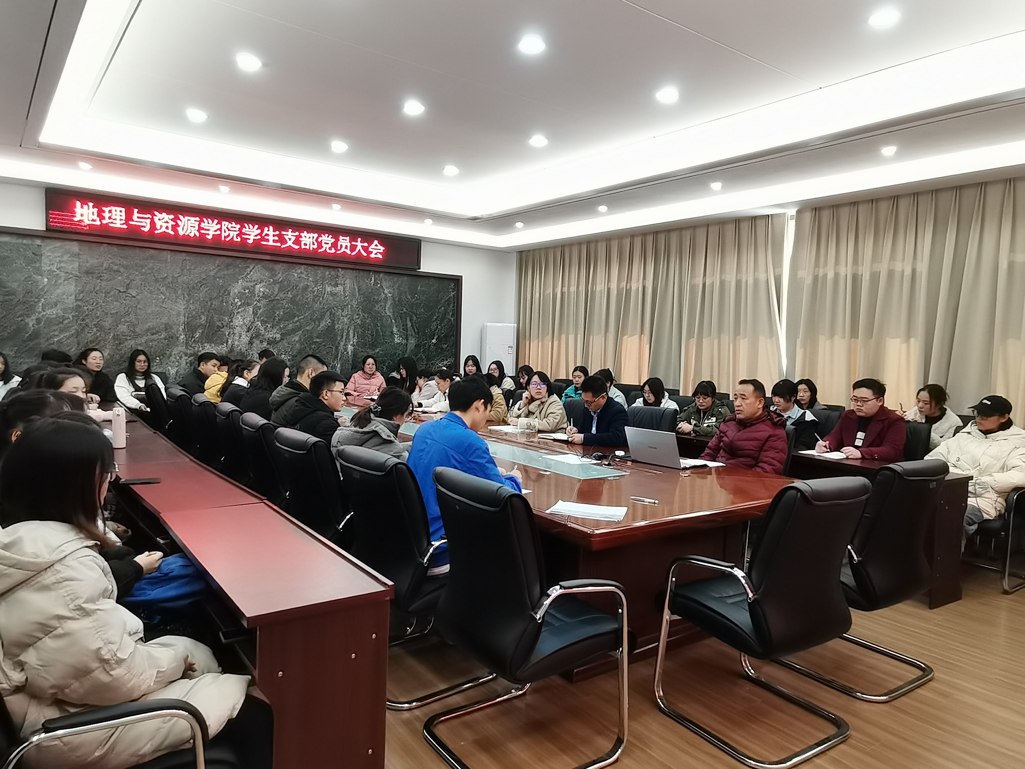 吴亚平介绍了两年来学生党员发展的基本情况,并强调党员要把理想信念内化于心,外化于行,即要把自身理想和一生不变的信仰内化于心,把共产党员的责任、担当、奉献和自我约束外化于行,对自己严格要求,做一名合格的党员。吴亚平接着宣布,随着ballBET贝博BB艾弗森学生党员队伍的不断壮大,学校党委已经批准,通过这次全校性的支部改选,将ballBET贝博BB艾弗森学生党支部析分为地理科学类学生党支部和资源环境类学生党支部。吴亚平要求,两个支部成立后,要进一步做好支部的组织建设,思想建设,政治建设,继续做好学生党员发展工作。吴亚平指出,两个支部党员要积极参与支部工作,开创学生党建工作的新局面。同时,两个学生支部工作要紧密协作,共同推进学生党建工作,把支部建设成坚强可靠的战斗堡垒。吴亚平还特别强调,学生党员要发挥带头作用,端正学风,在日常学习生活及党员活动参与过程中不断得到提升和成长,成为一名真正的合格的共产党员。罗绪强祝贺学院党员队伍不断壮大,不断成长,并表示两个学生支部工作目标性强,既突出学科专业特点,又便于开展工作突出学科优势,党员是共产党的一员,学生党员要把成绩搞好,本领搞强,严格要求约束自己,明确自己的义务,发挥标杆作用,为人民谋幸福,为民族谋复兴,成为新时代能担大任的国之栋梁。