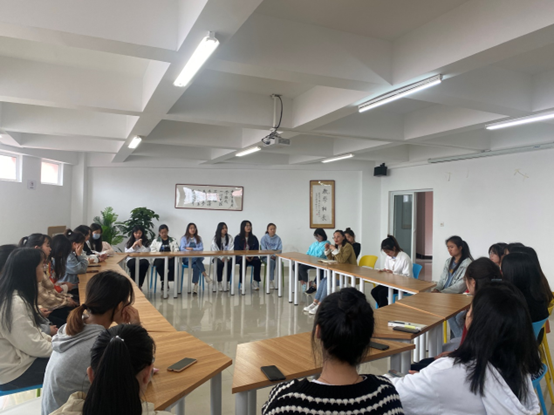 5月18日中午,ballBET贝博BB艾弗森2020级学生在学校兰园四楼自习室开展了“对话青春,女大学生如何关爱自己”主题分享会。会议由辅导员林丽老师主持,2020级各班级女生寝室长参加会议。