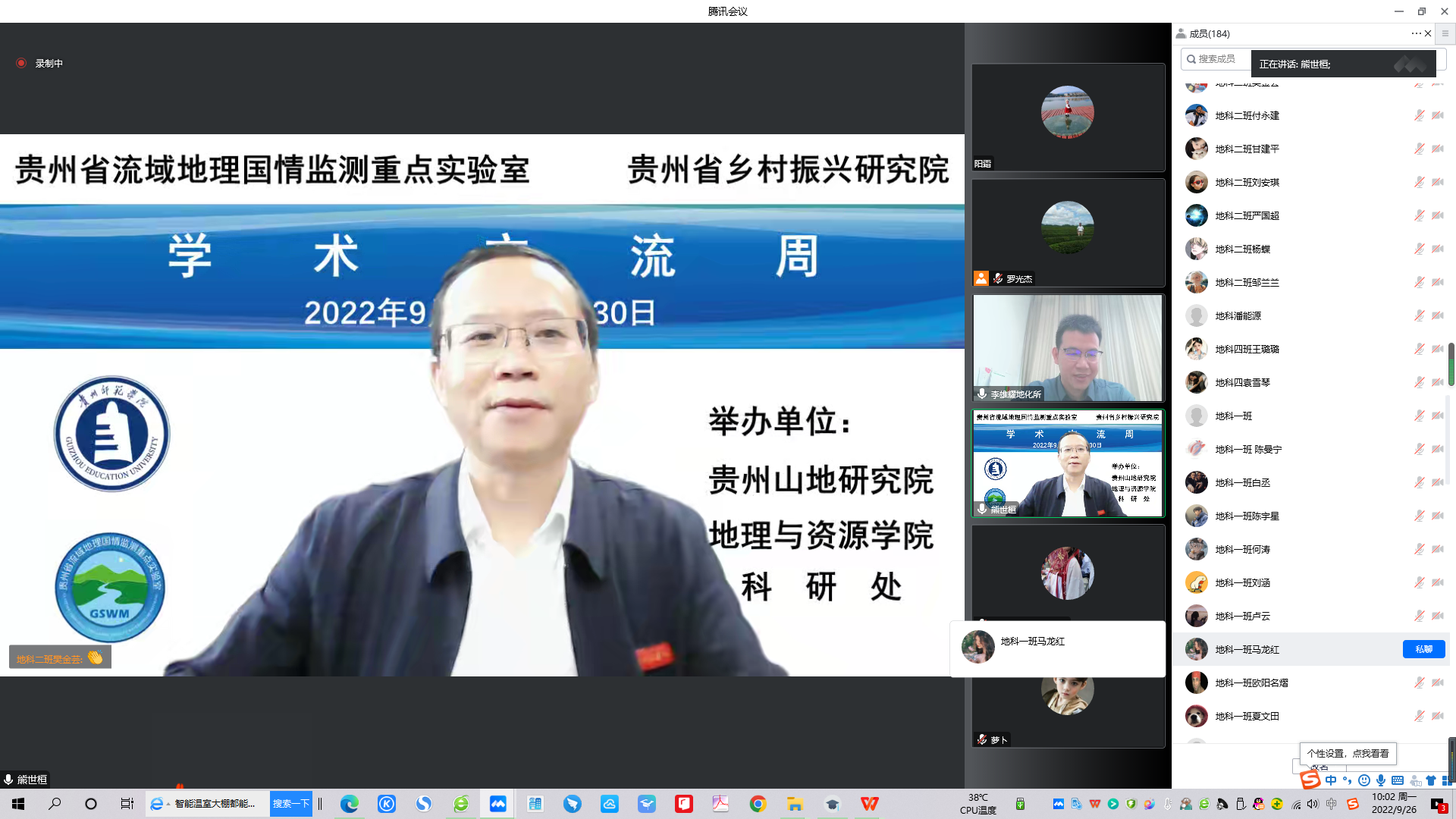 为加强学术交流,营造良好学术氛围,拓展学术领域,推动学科平台高质量发展,2022年9月26日--30日,贝博官网贵州山地研究院、ballBET贝博BB艾弗森、科研处联合举办地理与资源类学科2022年下半年学术交流周。受当前疫情影响,交流周活动在腾讯会议进行,学校党委副书记熊世桓主持了专家学者学术报告,地理与资源类相关专业教师、研究生、本科生参加了学术交流周全部特邀报告。
