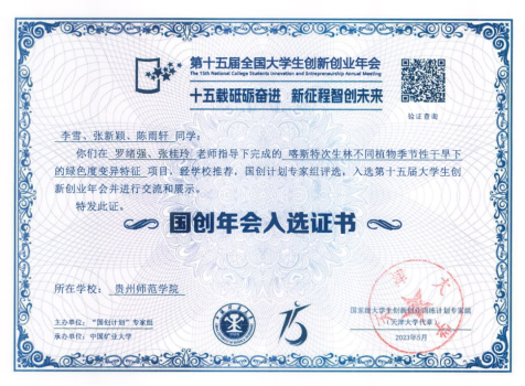 “国创年会”是由教育部发起、“国创计划”专家组主办,依托“国创计划”开展的一项重要年度性展示交流活动,是全国高校本科教学改革中覆盖面最广、影响力最大、学生参与最多、水平最高的盛会之一。据悉,本届年会共收到部属高校和地方教育主管部门推荐项目872项,经过相关学科专家初评、“国创计划”专家工作组复选,遴选出参加第十五届全国大学生创新创业年会的学术论文195篇(地方高校107篇),改革成果展示项目243项(地方高校107项),创业推介项目70项(地方高校39项),共计508项(地方高校253项)。贵州高校共入选项目5项(学术论文项目3项,改革成果项目2项)。