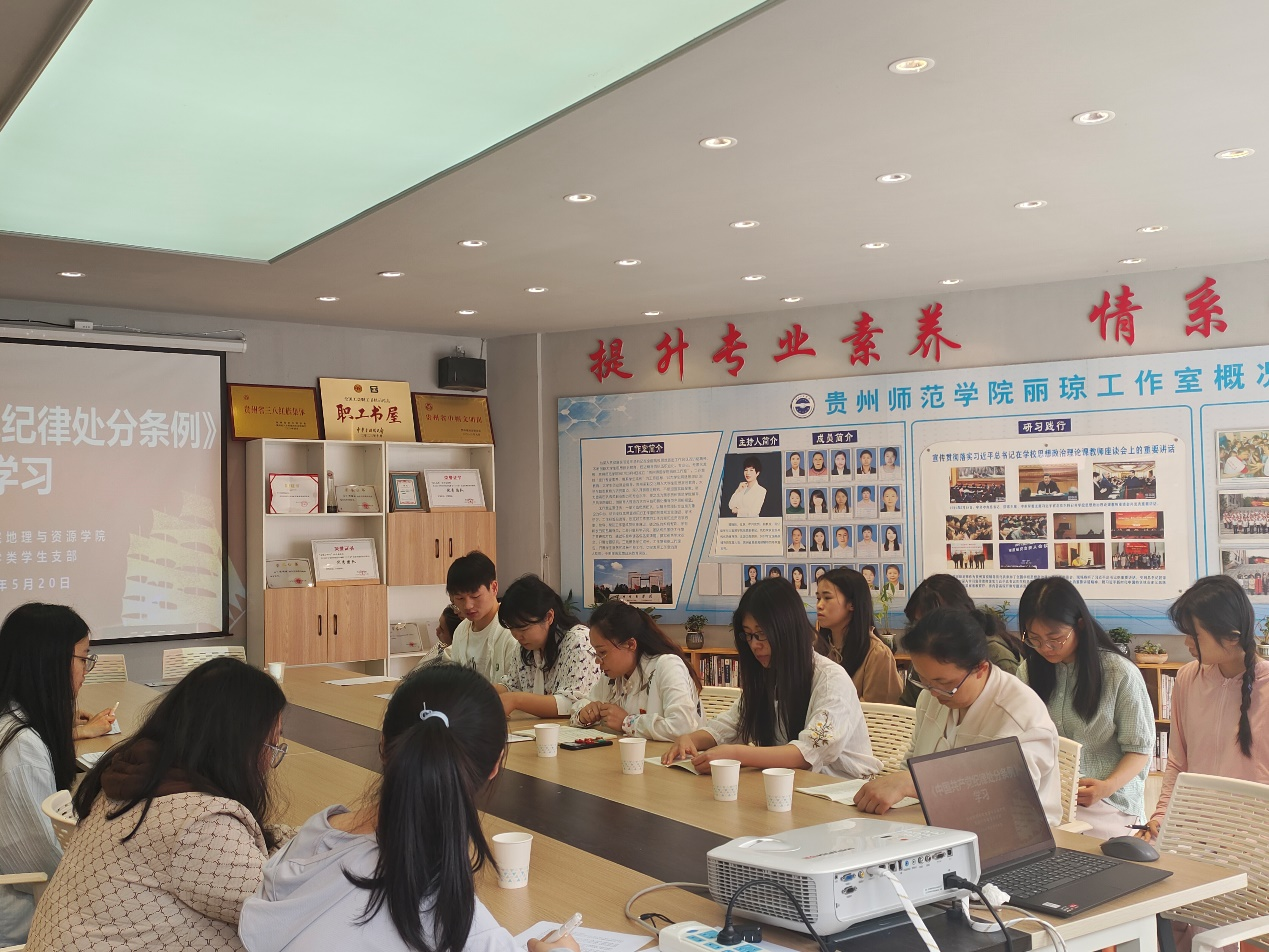 为深入学习贯彻习近平总书记关于党纪学习教育的重要指示精神,2024年5月20日中午,ballBET贝博BB艾弗森地理科学类学生党支部在丽琼工作室开展了关于《中国共产党纪律处分条例》的学习活动。
