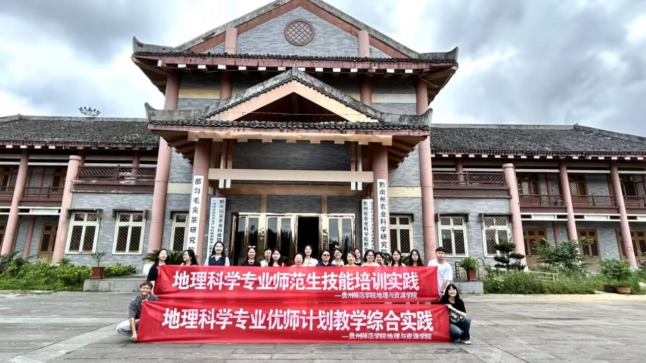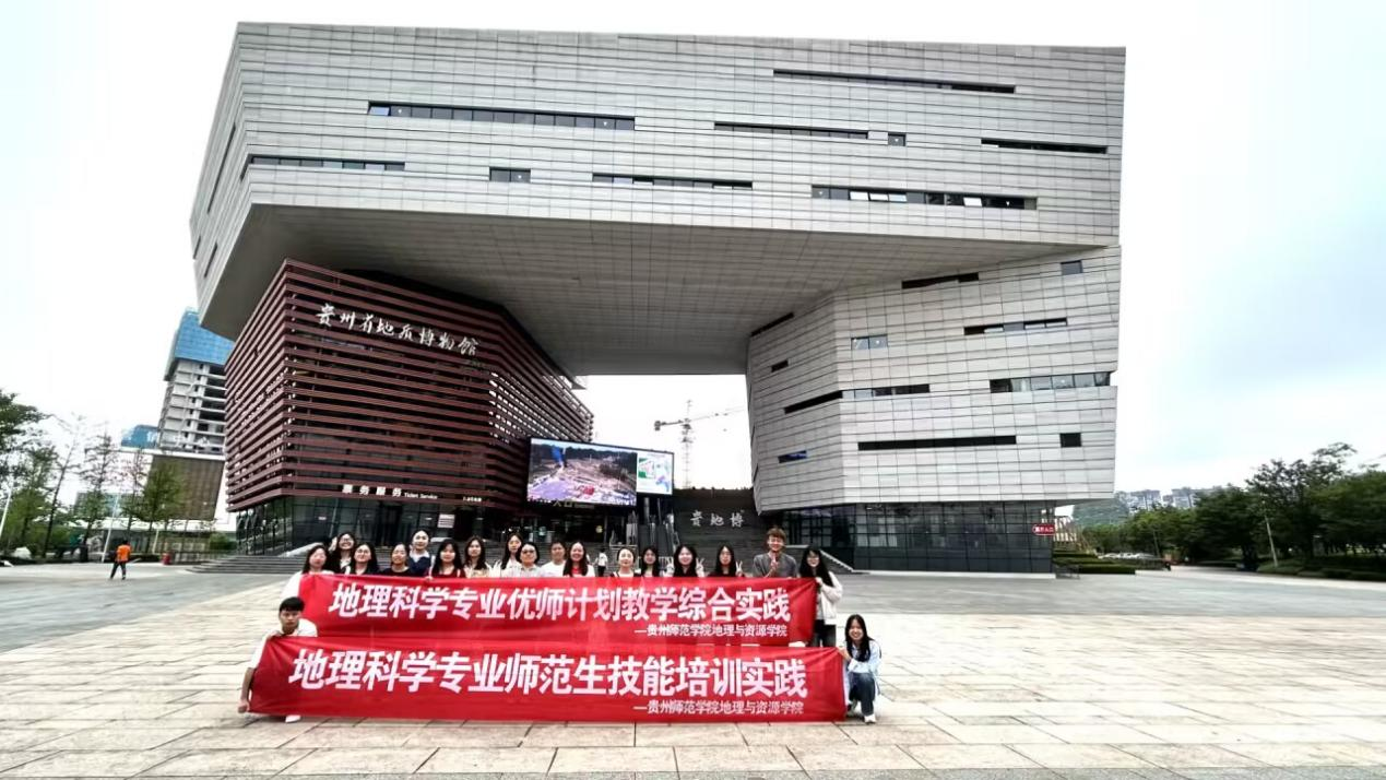 本次实践活动以“地理师范优师技能培养计划”为中心,分为地理一线课堂观摩、茶文化历史探究与贵州地质环境学习三个环节。首先,实践活动赴都匀一中,观摩都匀一中地理教研组组长柏兴奇老师授课,主题为《污染物跨境转移与环境安全》。课后开展教学经验分享与探讨会,柏兴奇老师分享了他的课程设计思路与多年的地理教学经验,三名优师计划生表达了对柏老师课堂的学习感悟,就地理师范生技能培养向柏老师请教,柏老师从一线教学和实际情况的基础上对学生们的问题进行回答。三名带队老师也就地理师范生人才培养模式、教学理论方法改革等与大家进行分享交流,强调应该加强高校教学理论与中小学一线教学实践的深度融合和相互促进;在第二个环节的茶文化历史探究过程中,师生们前往都匀市茶博会进行实践学习。通过实地观察和测量,深入了解了都匀市地形地貌、水文气候等地理要素的形成和演变过程对都匀毛尖茶的影响以及都匀茶文化的历史进程和发展状况。进一步学习了解贵州喀斯特地貌的独特与茶文化的重要性;第三个环节,通过观摩贵州省地质博物馆开展贵州地质环境学习,组织学生有序参观了博物馆展厅,详细学习了贵州地质历史和地貌特征。通过馆内生动的模型和影像资料,师生们仿佛穿越回了亿万年前的贵州,见证了这片土地从海洋到陆地的演变过程。在讲解员的引导下,大家还深入了解了贵州的矿产资源分布和开采情况,贵州作为中国重要的矿产资源大省,其丰富的煤炭、磷矿等资源为国家的经济发展做出了巨大贡献。同时,讲解员也强调了资源开采与环境保护之间的平衡,倡导绿色矿山、可持续发展的理念。