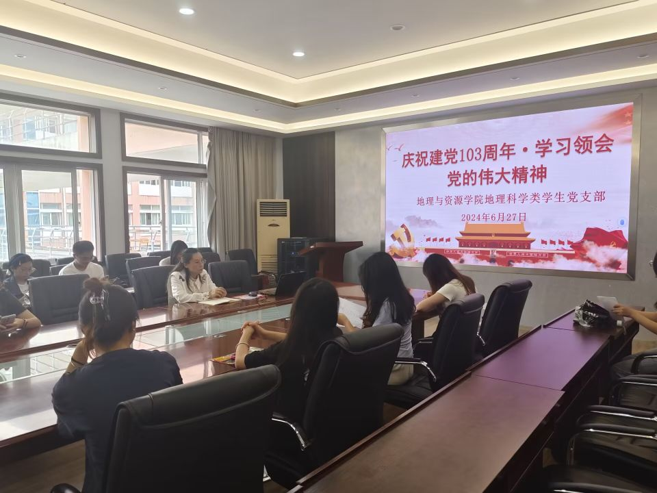 为隆重庆祝中国共产党成立103周年,进一步学习和领会党的伟大精神,深化对党的历史认识,激发爱国情怀。2024年6月27日,ballBET贝博BB艾弗森地理科学类学生党支部在宁静楼323会议室开展了“庆祝建党103周年·学习领会党的伟大精神”主题活动。