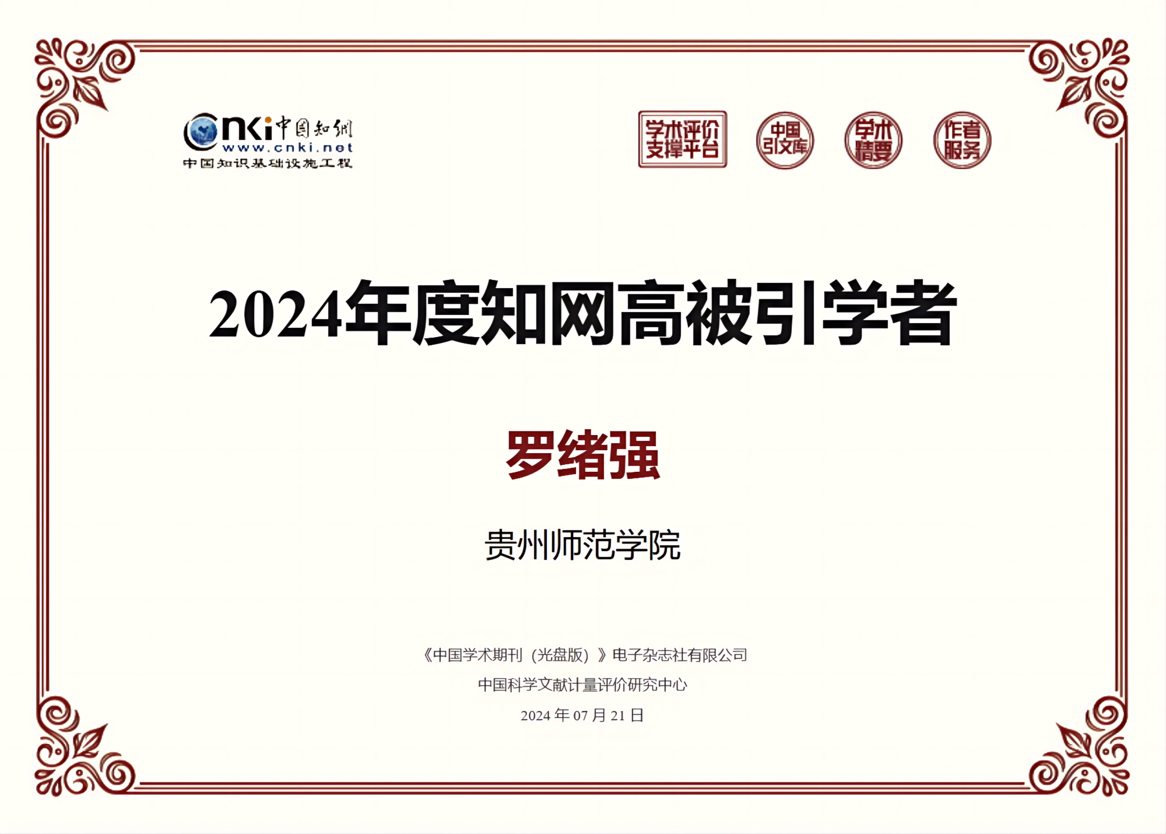 近日,中国知网发布了2024年度高被引学者名单。贝博官网三级教授罗绪强成功入选。据悉,此次评选由中国知网“学术精要”数据库依据2013-2023年间学者发表论文的影响力指数进行评选,“高被引学者”遴选范围为近十年发表至少一篇PCSI指数高于1.65期刊或会议论文的学者,且近十年发表期刊会议论文的PCSI指数之和位于上述学者的前1%,并满足以下条件:(1)仅统计PCSI指数大于1.65的论文;(2)至少发表1篇高影响力论文;(3)至少发表5篇PCSI指数大于1.65的论文。
