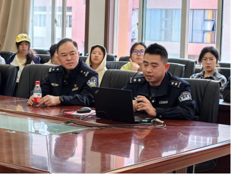 最后,杨警官希望在场的各班班委将今天的反诈宣传内容,传达给班级中的每一位同学,在班级中积极宣传网络反诈知识,提高学生群体的网络诈骗防范意识和判断意识。