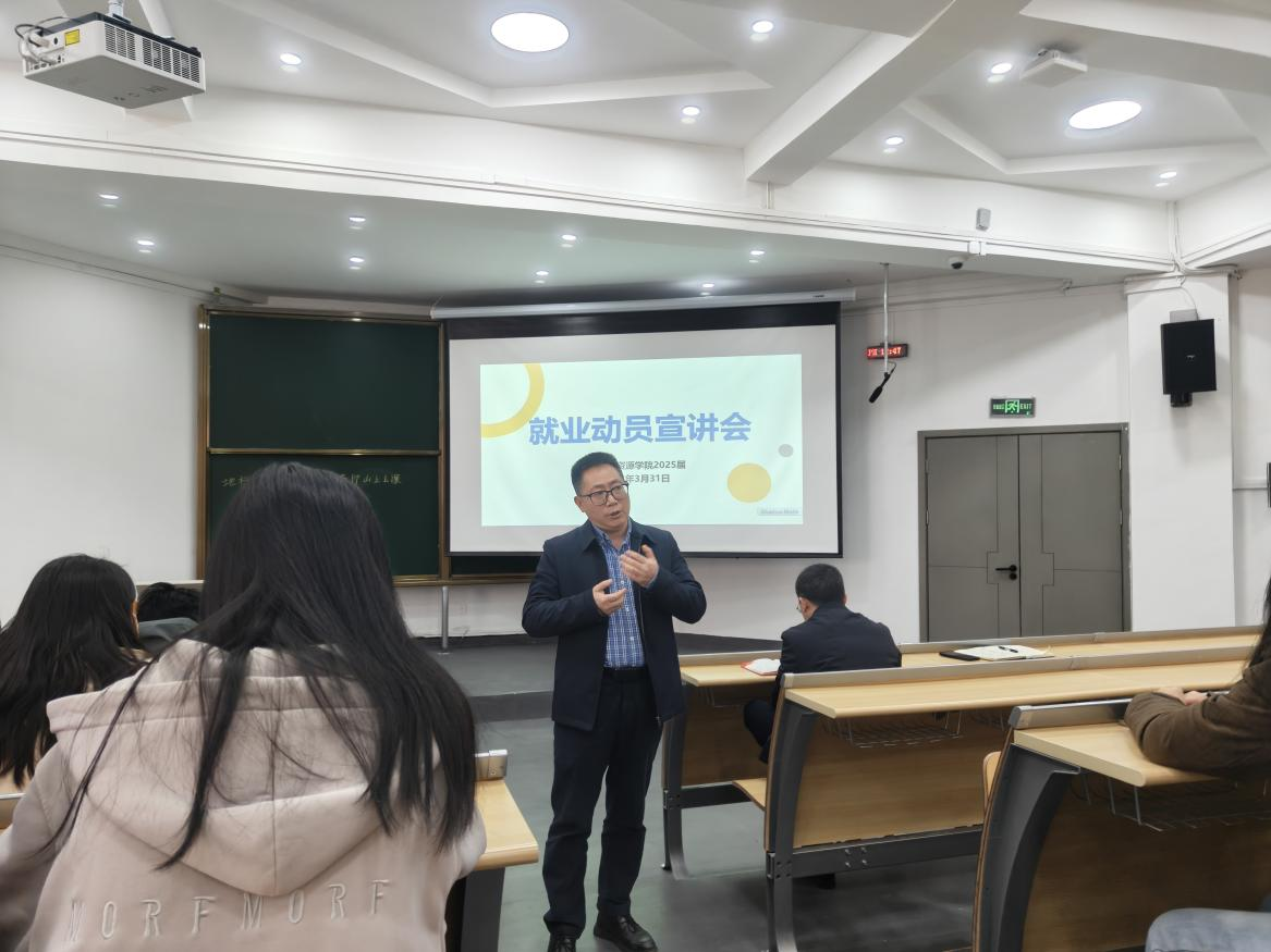 为深入贯彻党中央国务院、省委省政府关于高校毕业生就业创业工作的决策部署,扎实推进学院毕业生高质量充分就业,3月31日,ballBET贝博BB艾弗森在宁静楼235教室召开了2025届毕业生就业动员宣讲会。学院院长兼党委副书记罗绪强、学院党委副书记王万强出席会议并作专题指导,2021级全体学生参加会议。会议由2025届毕业班辅导员刘丹丹主持。