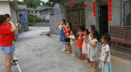 在走访交流中我们了解到乌江村留守儿童暑期缺乏教育辅导的相关问题,同时为了助力当地村委会乡村振兴普法工作,7月21-23日,两院三下乡团队在乌江村开展了为期三天的留守儿童守护活动和农村法治宣传专题计划。在这三天期间,三下乡团队齐聚播州区文物保护建筑——翁家坝戏楼,在该处建立起爱心守护小站,为留守儿童开展关爱帮扶志愿服务,围绕学业辅导、素质拓展、思想引领等方面开展相关活动。除了开展暑假作业辅导相关活动,小队成员分头行动,拓展活动方式,结合党史教育,带领学龄儿童玩游戏、传唱爱国教育歌曲、寓教于乐,让中国共产党百年华诞的赞歌奏响在乡村一隅。
