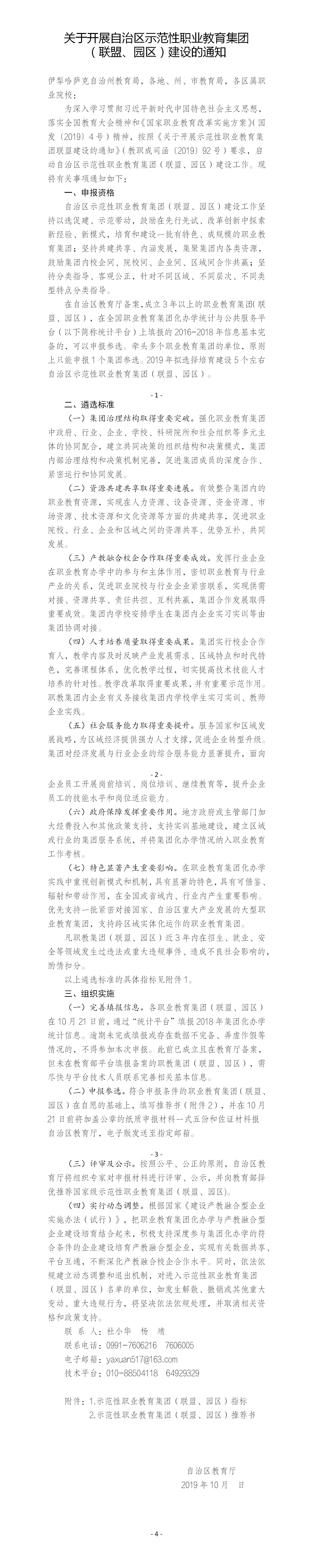 关于开展自治区示范性职业教育集团 (联盟、园区)建设的通知