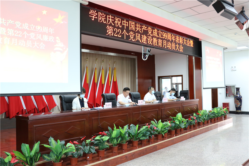 2020年7月1日下午,学院党委召开庆祝中国共产党成立99周年表彰大会暨第二十二个党风廉政建设教育月动员大会。会议表彰了一批近年来涌现出的先进基层党组织、优秀基层党组织书记、优秀党务工作者和优秀共产党员,启动部署第二十二个党风廉政教育月工作。